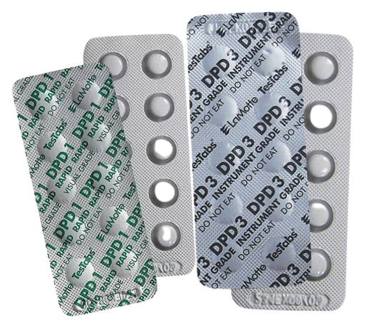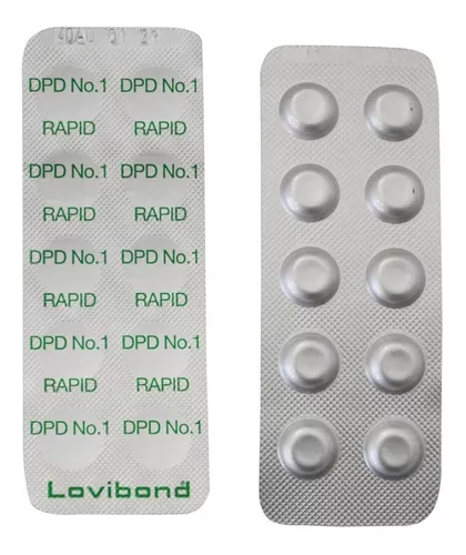 Pastilla dpd #1 por 100 unidades sirven para medir los niveles de cloro libre en tratamientos de agua, 100 pastillas en blister de aluminio para sacarlas fácilmente y depositarlas directamente en el kit y así evitar el contacto con los dedos.